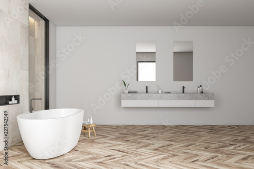 White Tile Bathrom Interior Tub And Sink Side View Buy