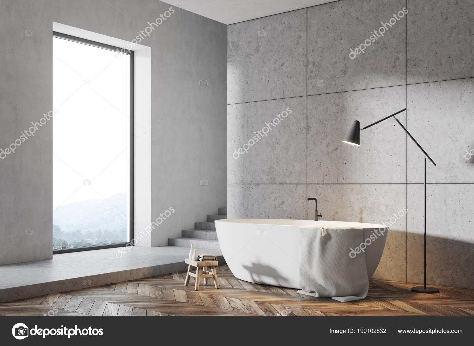 Gray Bathroom Interior White Tiles Used Stock Illustration