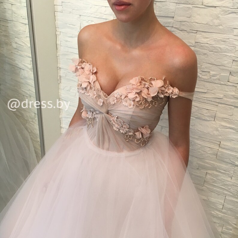 Pd18067 Soft Pink Off The Shoulder Tulle Princess Wedding
