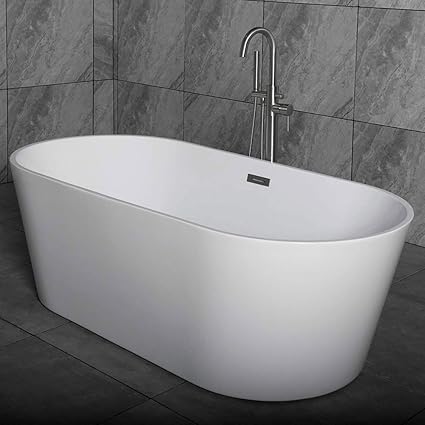 Woodbridge 54 Acrylic Freestanding Bathtub Contemporary Soaking Tub B 0006 With Brushed Nickel Faucet F0001