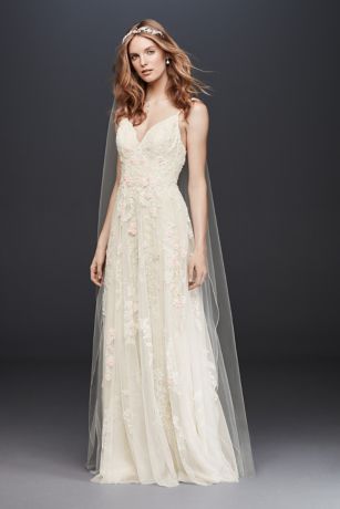 Allover Lace Spaghetti Strap A Line Wedding Dress David S Bridal