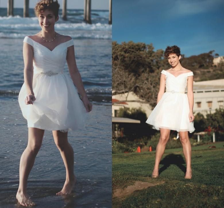 2018 Simple Short Beach Wedding Dresses Off The Shoulder Chiffon Summer Country Western Bridal Gowns Cheap Wedding Reception Dress