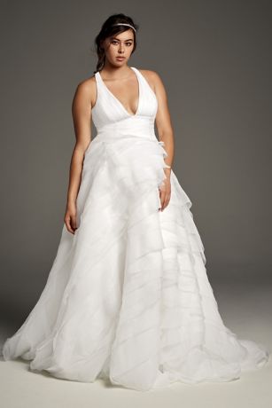 Tiered Organza T Back Plus Size Wedding Dress
