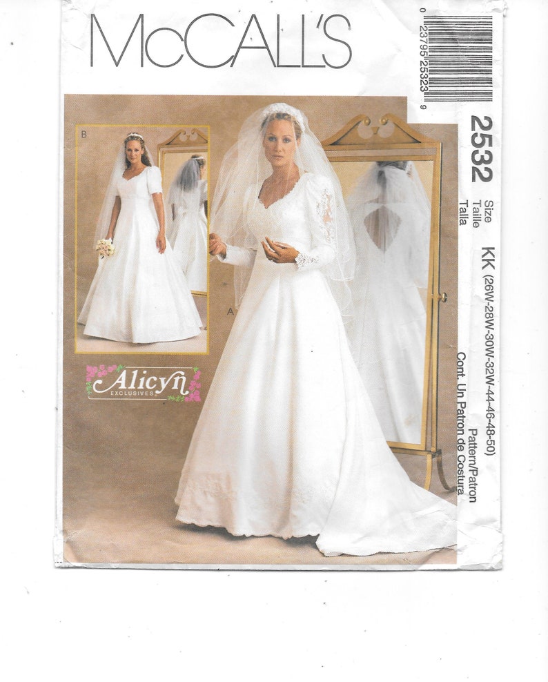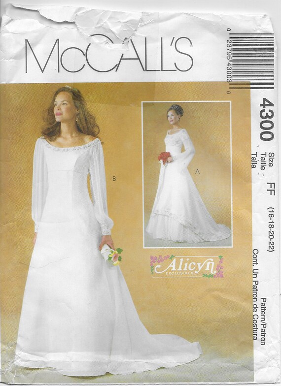 Uncut Mccall S 4300 Misses Wedding Dress Sewing Pattern Size 10 16 Or 16 22 Women Bridal Dress Pattern Wedding Dress Long Sleeves Train