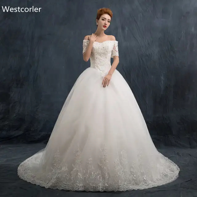 Us 108 6 30 Off 2018 Vestido De Noiva Simple Cap Sleeves Wedding Dresses White Ball Gown Short Sleeves Lace Up Wedding Dresses Plus Size In Wedding