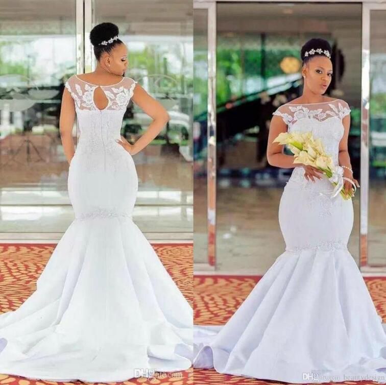 South African Lace Mermaid Wedding Dresses Short Sleeves Sheer Neck Lace Appliqued Bridal Gowns Plus Size Wedding Gowns Robe De Mariage