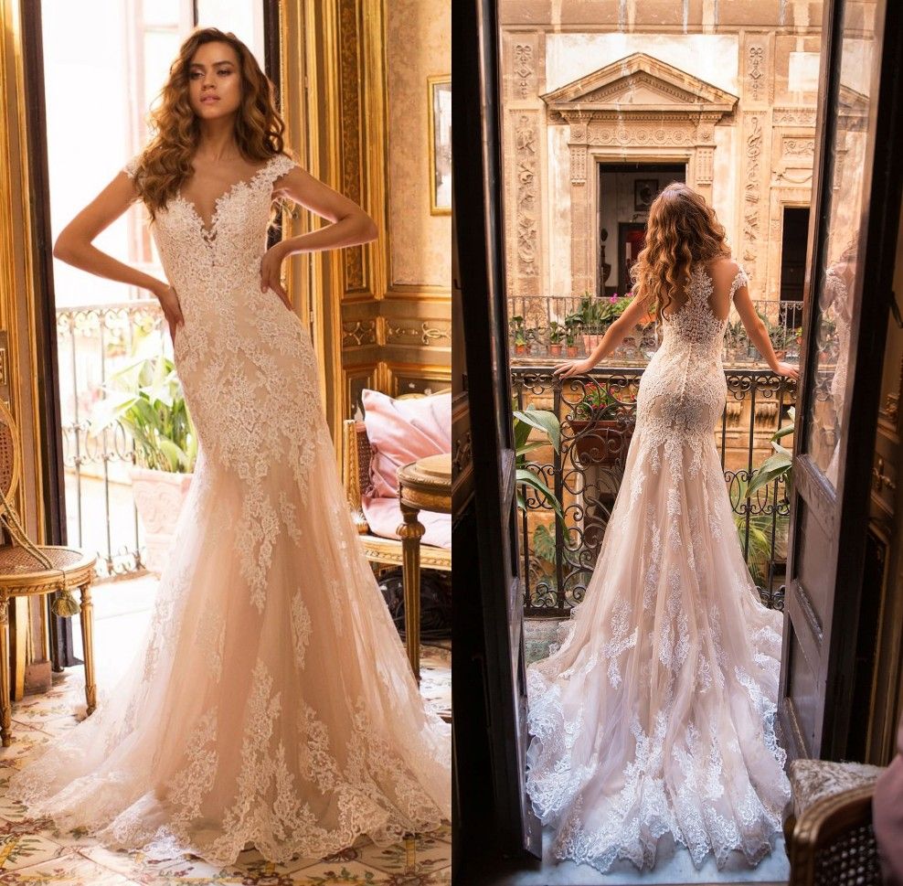 Lussano 2019 Plus Size Mermaid Wedding Dresses Lace Applique Chapel Sweep Train Bridal Gowns Plus Size Chapel Wedding Gown Vestido De Novia