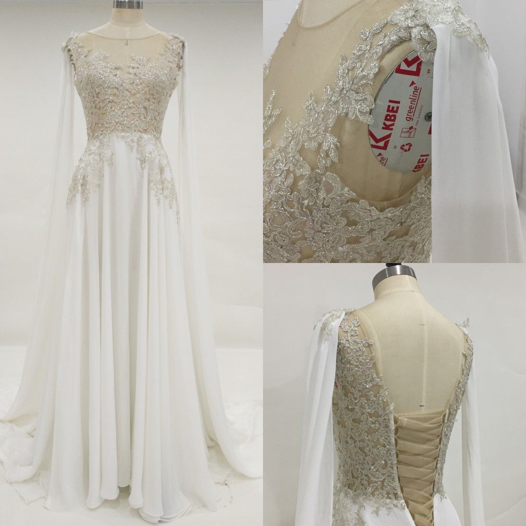 Real Ivory Champagne Sheer Wedding Dress Illusion Top Sleeveless Silver Lace Appliques Corset Back Chiffon Bridal Gowns With Split And Train
