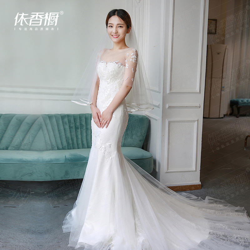 Long Sleeve Main Fishtail Wedding Dress Bride 2019 New Slim Female Sen Department Of Simple Little Tail Was Thin Light