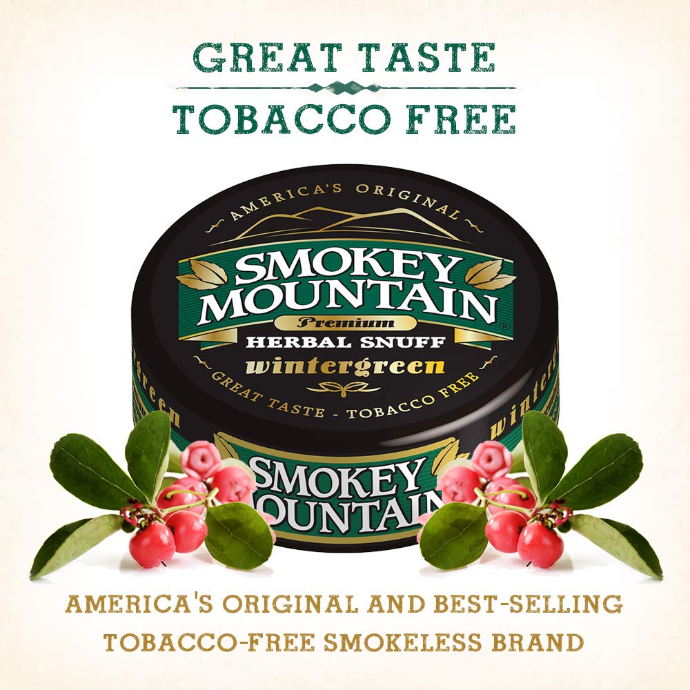 Smokey Mountain Wintergreen Snuff 5 Cans No Tobacco And No Nicotine Refreshing Herbal And Smokeless Chew Alternative