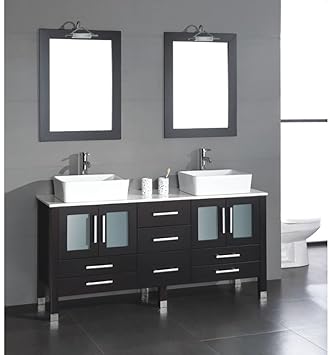 The Tub Connection 71 Inch Espresso Wood Porcelain Double Sink Chrome Faucets Webster