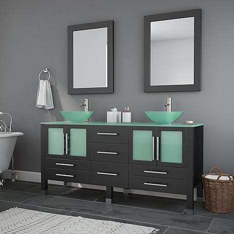 The Tub Connection 63 Inch Espresso Wood Glass Double Sink Bathroom Vanity Set Oregon Chrome Faucets