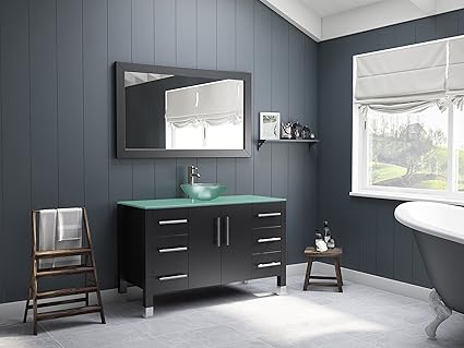 The Tub Connection 48 Inch Wood Glass Single Vessel Sink Bathroom Vanity Set Shelby Brushed Nickel Faucet
