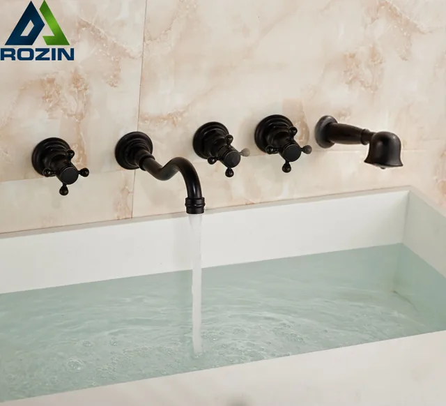 Us 170 0 Three Handles Wall Mount Bathtub Mixer Faucet Widespread 5 Holes Bathroom Bath Shower Taps Oil Rubbed Bronze In Shower Faucets From Home