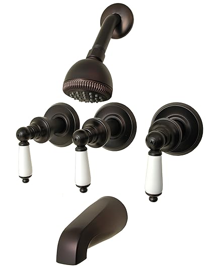 3 Handle Tub Shower Faucet Oil Rubbed Bronze Finish Porcelain Handle Compression Stems By Plumb Usa