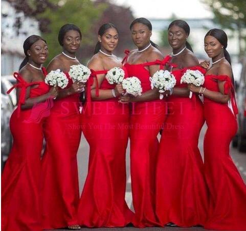 2018 Red Bridesmaid Dresses South African Floor Length Plus Size Wedding Guest Dresses Formal Long Arabic Maid Of Honor Dresses