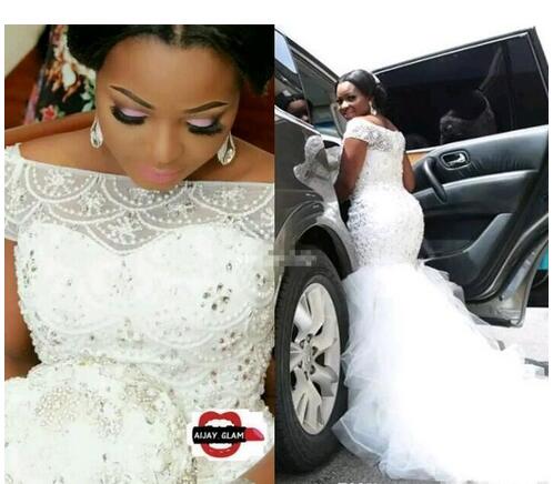 Sexy Mermaid Mermaid Short Sleeve Beaded Nigerian Plus Size White Bling Winter Steven Khalil Wedding Dresses 2018 Bridal Gwon