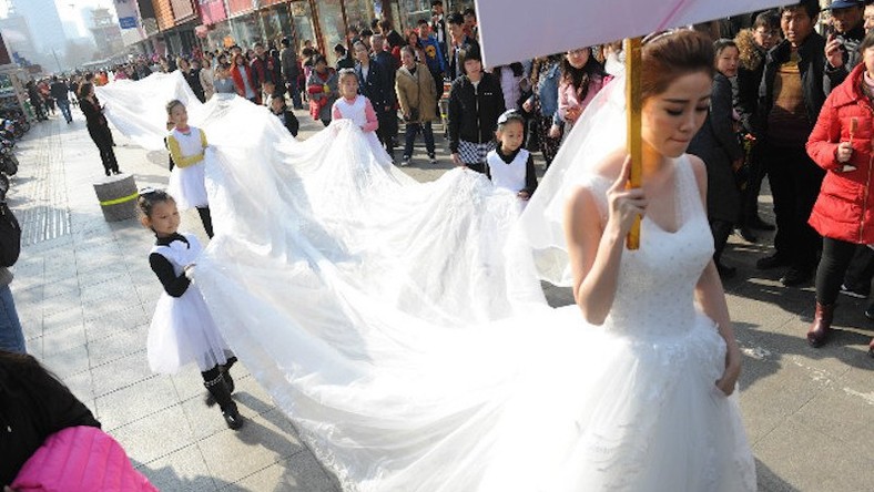 Chinese Bride Gets Married In 1 4 Mile Long Wedding Dress