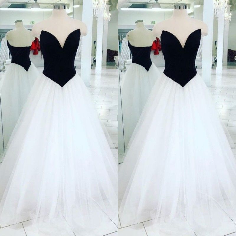 Cheap Black And White Wedding Dresses Deep Sweetheart Sleeveless Simple Gothic A Line Wedding Gown Low Back Bridal Gowns Custom Colors