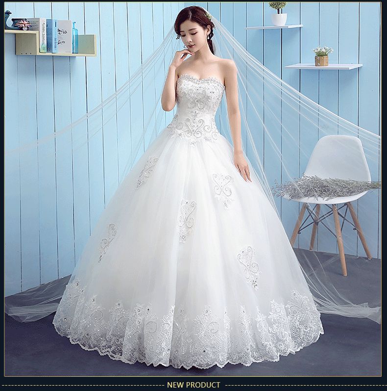 Fashion Simple Classic Ball Gown Off White Wedding Dress Lace Up Sweet Strapless Sleeveless Vestido De Noiva Lace Appliques