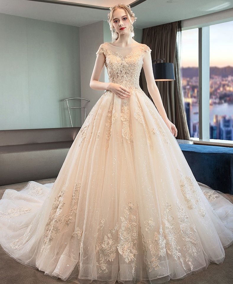 2019 New Champagne Princess Wedding Dress Beach Bride Dress Slim Fit Luxury Big Tail Lace Up Design