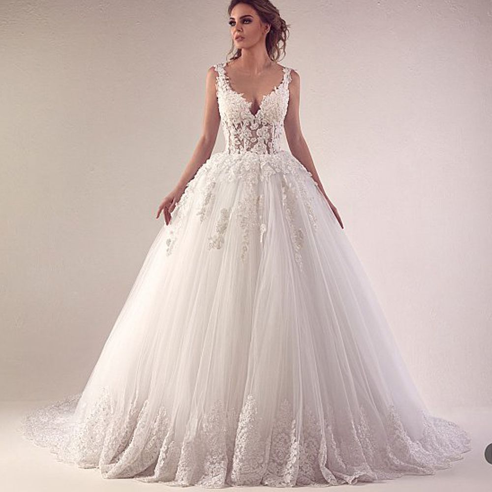 Lace Wedding Dresses 2019 Sweetheart Neckline Ball Gown Puffy Tulle Court Train Bridal Dresses Gowns Vestidos De Noiva