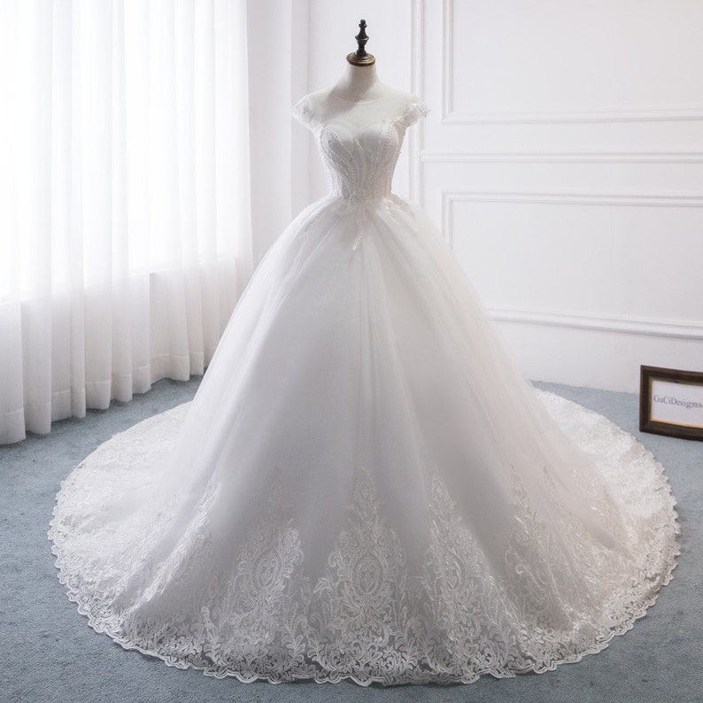 Details About Lace Cap Sleeve Princess Ball Wedding Dress White Ivory Corset Bridal Gown Size