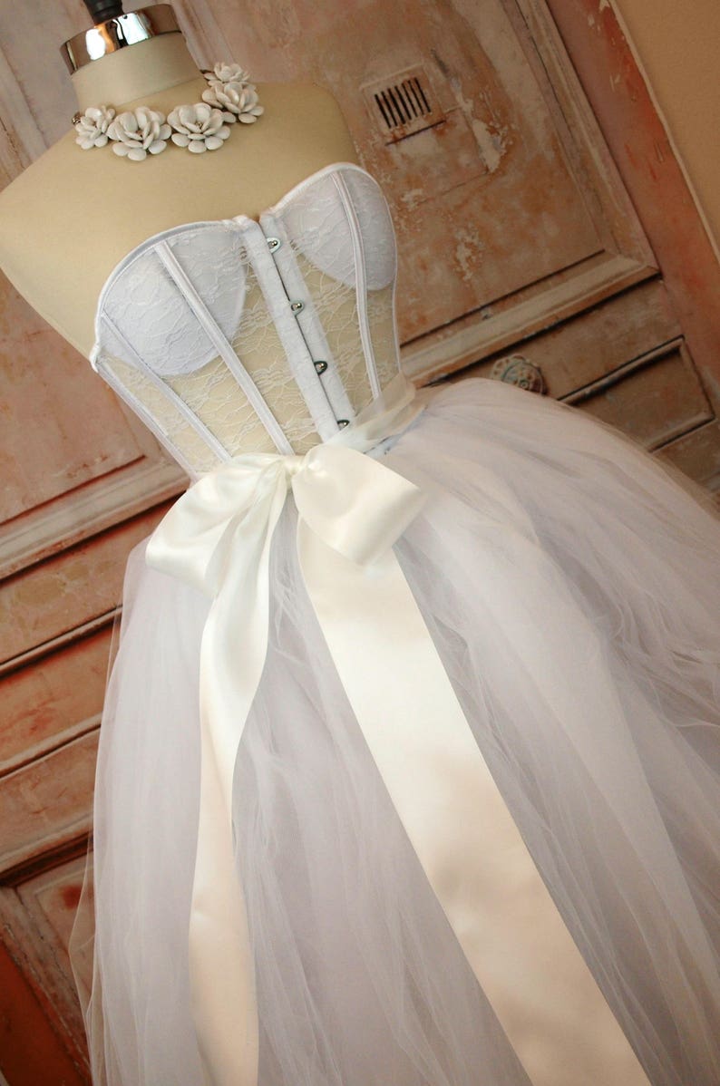 White Lace Corset Wedding Dress Tulle Dress Prom Dress See Through Corset Wedding Dress Alternative Wedding Dress Convertible Wedding Dress