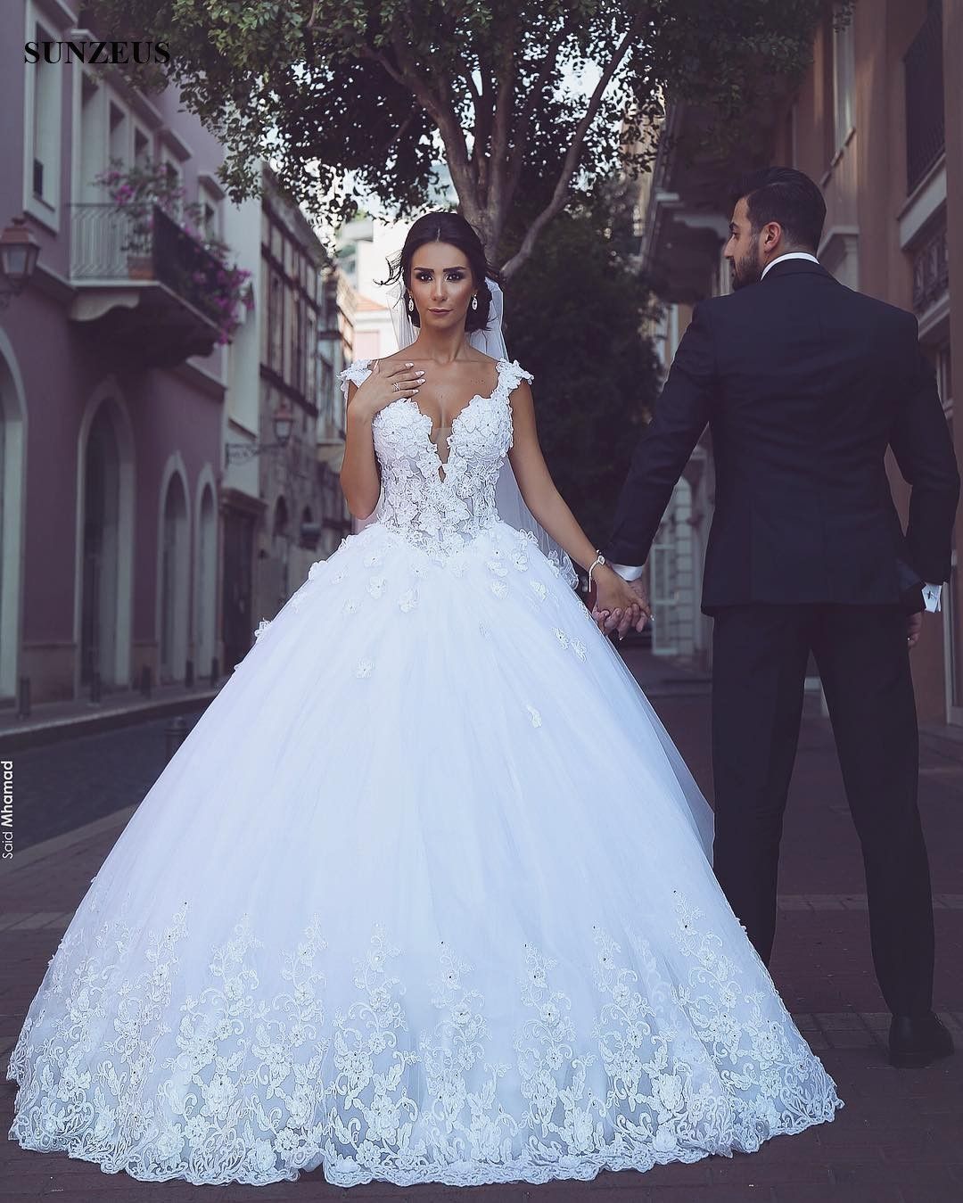 Ball Gown Sweetheart See Through Corset Lace Wedding Dresses With Beads Saudi Arabic Women Dress For Brides 2017 Flowers Bridal Gowns Abito Designer