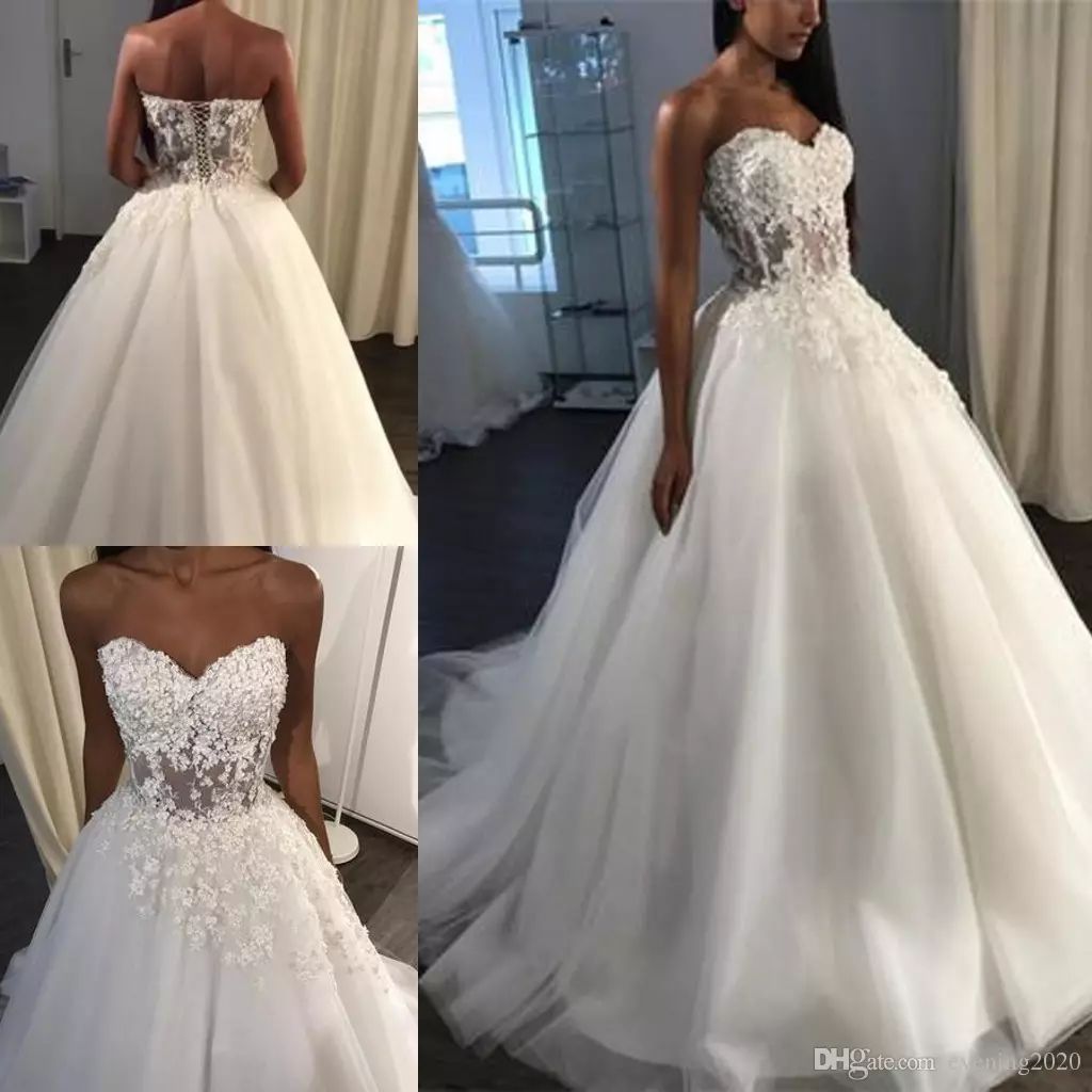 Beach Bridal Dress Lace Appliques Sweetheart See Through Corset Tulle Wedding Dresses 2019 Elegant Abiye Vestidos De Noiva