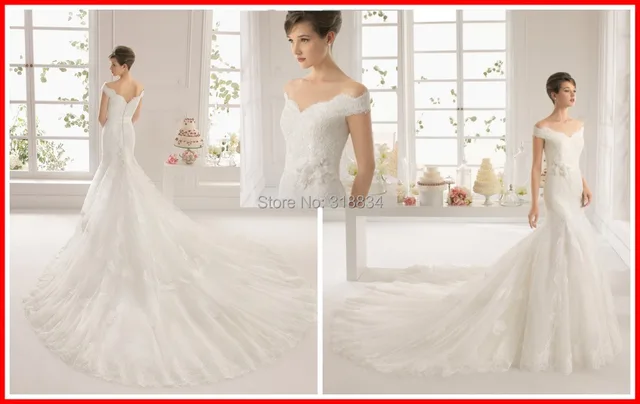 Romantic Sexy Mermaid Wedding Dresses Royal Blue 2015 Vestido De Novia Cap Short Sleeve V Neck Lace Appliques Tulle Bridal Gown In Wedding Dresses