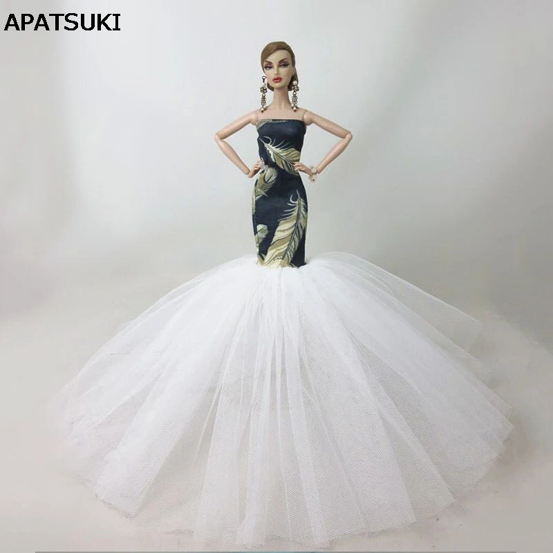Us 4 8 42 Off Green Feather Fashion Mermaid Clothes For Barbie Doll Fishtail Wedding Dress For Barbie Dollhouse Handmade Limited Collection In Dolls