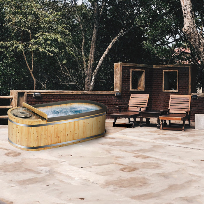 2 Person Natural Pine Wood Fired Hot Tub With Charcoal Stove