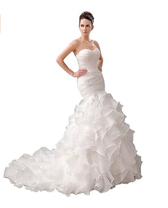 Ikerenwedding Women S Sweetheart Court Train Mermaid Wedding Dress With Ruffles