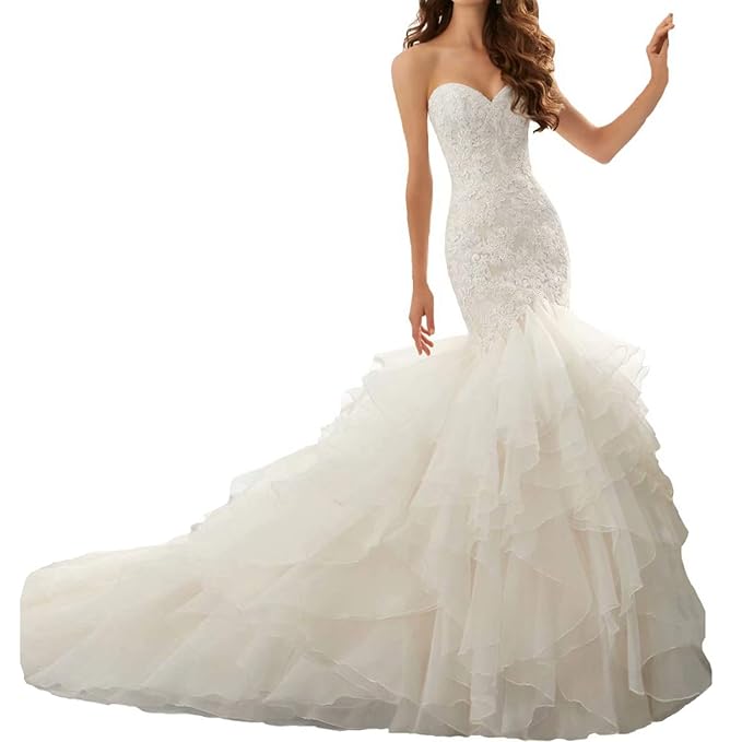 Strapless Sweetheart Bodice Corset Organza Layered Wedding Mermaid Dresses