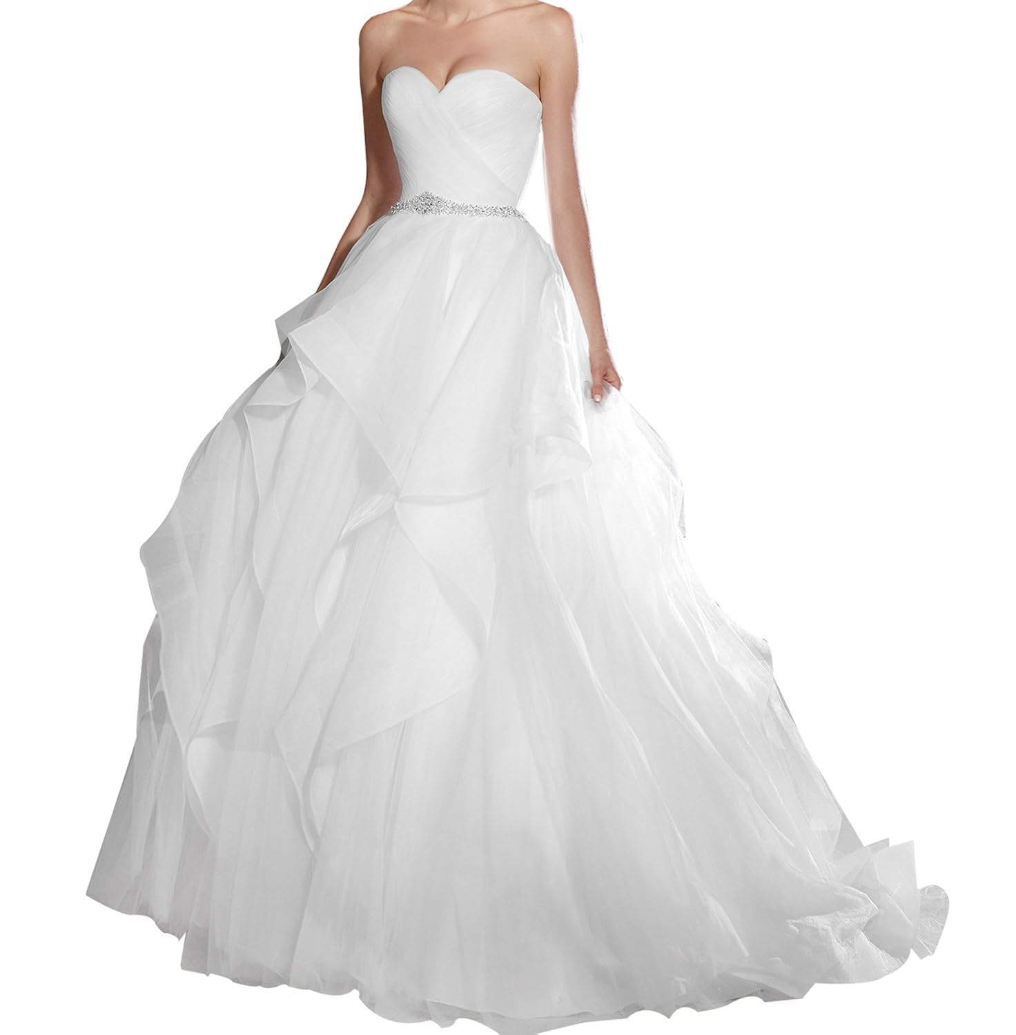 Sweetheart Strapless Wedding Gown Floor Length Layers Tulle Ruffles Wedding Dress W125