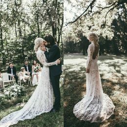 Us 126 4 21 Off Custom Garden V Neck Full Lace 2019 Wedding Dresses Backless Summer Beach Bridal Gowns Chapel Train Mermaid Vestidos De Mariee In