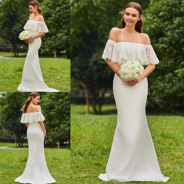 2018 Simple Summer Mermaid Wedding Dresses Lace Applique Off Shoulder Bridal Gowns Outside Garden Wedding Dress Plus Size Cheap Mermaid Wedding Dress