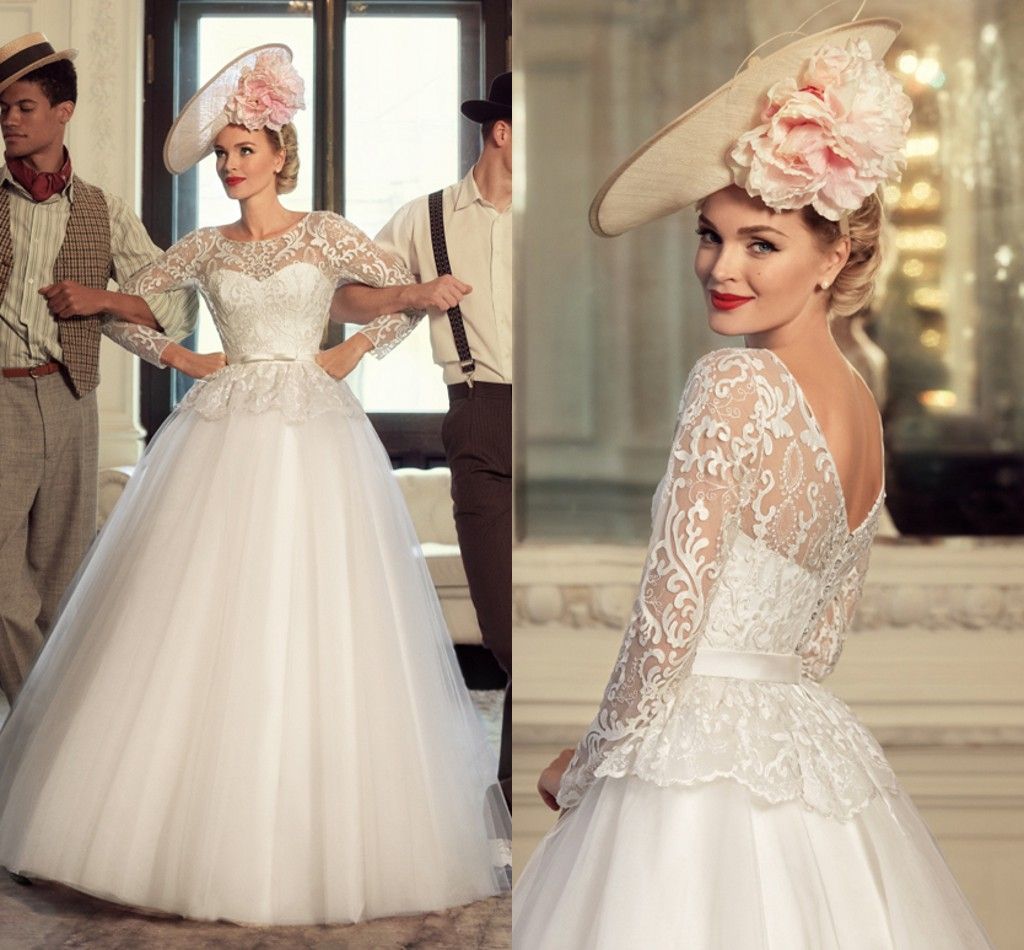 2015 Vintage Tatiana Kaplun Ball Gown Wedding Dresses Sweetheart Neckline Tulle Bridal Gowns With Lace Jacket Long Sleeves Satin Sash