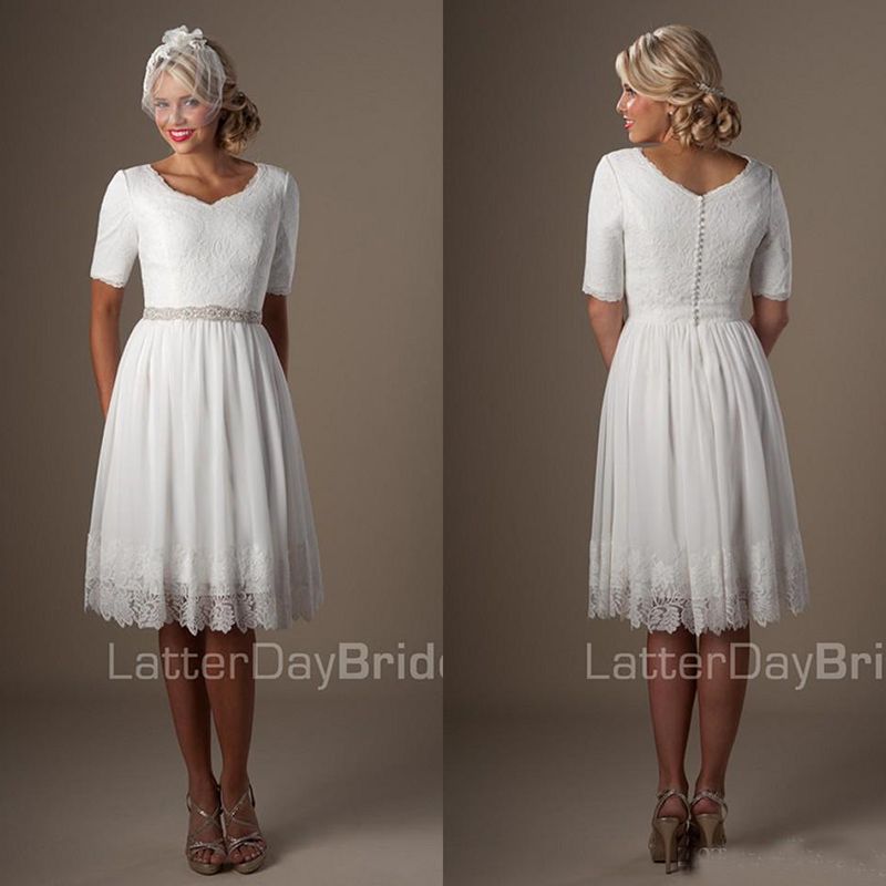 Short Informal Wedding Dresses With Half Sleeves 2019 Knee Length Vintage Lace Country Beach Reception Casul Wedding Dresses