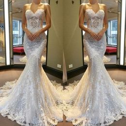 2018 Soft Beautiful Lace Mermaid Wedding Dresses Modern Off Shoulder Sleeveless Lace Appliques Sweep Train Custom Slim Garden Bridal Gowns