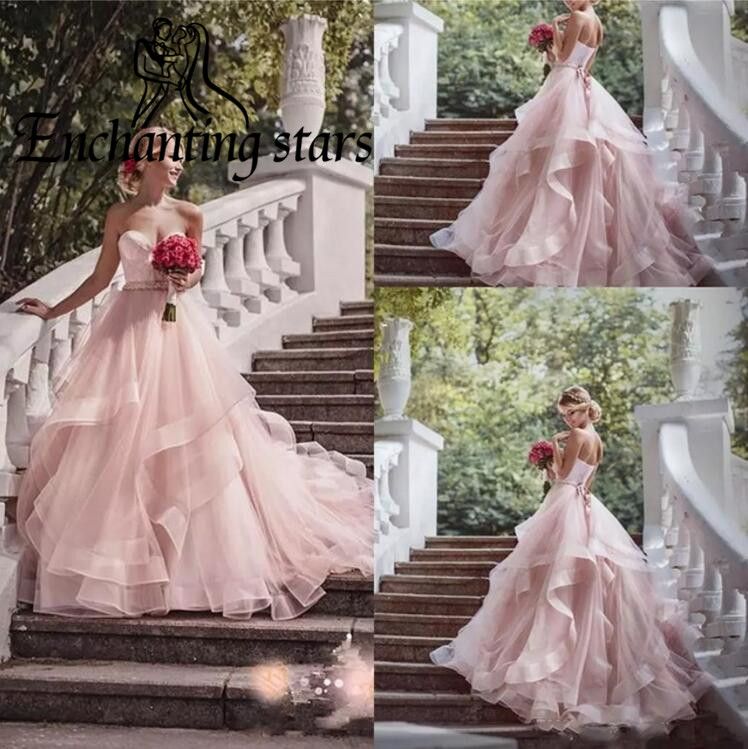 Vestido De Noiva Pale Pink Wedding Dresses 2019 Soft Tulle Elegant Unique Elegant Bridal Dresses Online Boho Wedding Dress